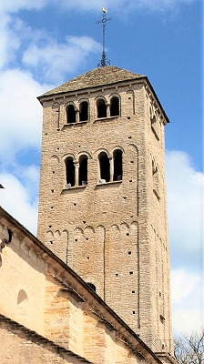 | この教会堂の特徴は、遠く離れたところからもその姿が見える高く聳える鐘楼にあり、クリュニーUの鐘楼よりも5メートル高かったそうです。 | Elle se caractérise par son haut clocher, visible de loin, plus élevé d'environ 5 m que celui de Cluny II. |
