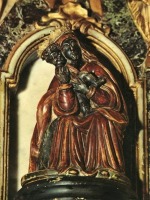 | La statue de la Vierge actuelle sur l'autel est une copie realisée au 18e siècle. Elle mesure 31 cm de haut, et est faite en noyer peint de couleur ébène. |