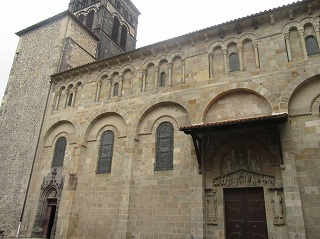 | その後の修復工事で、鐘楼は再建されましたが、ロマネスクの瓦は火山岩に取り替えられ、石の目地は石灰からセメントに造り替えられました。しかし1999-2008年に実施された瓦や目地の復元作業等により、教会堂はオリジナルの様相を取り戻しました。 | La restauration ultérieure a amené la reconstruction des clochers, ainsi que le remplacement des tuiles romanes par des dalles de lave, la substitution des joints à la chaux par ceux en ciment etc.. Mais la restitution des tuiles et des joints etc. entre 1999 et 2008, ont rendu l'église à son état originel. | |||