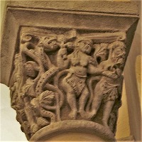 堂内のその他の柱頭彫刻は、コンクのサント・フォワ修道院やモザのサン・ピエール・エ・サン・カプレ修道院をモデルにしているとされます。 身廊とナルテックスにある柱頭彫刻のうち約12の柱頭が、Bernardという人物の作品と考えられています。RobertusはBernardの師匠だったともされます。 |