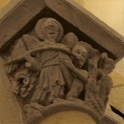 Linteau de l'église Saint-Pierre dans la place des Gras |