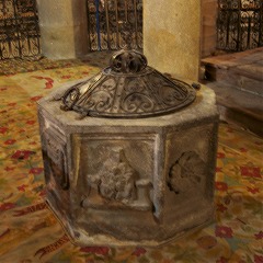 「イサクの燔祭」は南翼廊壁、グリフォンは放射状祭室でみられます。 |