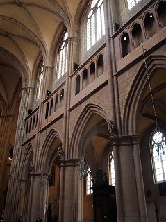 | 1271年に起こった新たな火災で、12世紀のロマネスク教会堂に聳えていた鐘楼が崩落し、身廊は倒壊しました。 そこでゴシック・スタイルで教会堂の再建が、修道院長ユーグ・ダルクにより1280年から開始されます。後陣は1287年に、教会堂全体は1393年に聖別されました。この5つめの建物が、現在の教会堂です。 |