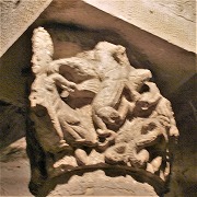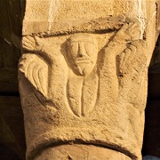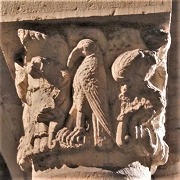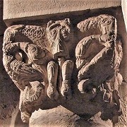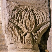 | クリプトの柱頭は、11世紀に遡ります。これらは19世紀の修復工事の際に新たに設置されたものです。 柱頭彫刻の制作には複数のアトリエが携わったとされ、その中にHunaldusという名のイタリア人修道士がいたようです。幾つかの柱頭彫刻は、トゥルニュのアトリエと並んで、ロマネスク期に活躍したブルゴーニュのアトリエによる作品です。 |
