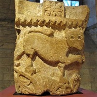 | On trouve également la tête de saint Pierre, réalisée au milieu du 12e siècle, qui ornait un piedroit du portail occidental de l'abbatialeSaint-Bénigne. | Le musée du Louvre de Paris abrite quelques chapiteaux sculptés de l'abbaye Saint-Jean-de-Réome de Moutiers-Saint-Jean. |