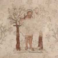 Peintures de la voûte 身廊を覆っていたロマネスクのヴォールトは、19世紀後半にオジーヴ・ヴォールトで覆い隠されました。しかしこの新たなヴォールトは1944年の爆撃で崩落し、建設当初のヴォールトが露となり、そこに描かれた1590年代に制作されたルネサンス期の壁画が姿を現しました。 左はエタンプの街の守護天使である大天使ミカエル、右は獣の毛皮を纏った洗礼者ヨハネです。 La voûte romane de la nef a été couverte au deuxième moitié du 19e siècle, par la voûte d'ogives. Mais celle-ci s'est effondrée par le bombardement en 1944, dévoilant la voûte primitive, décorée de peintures de l'époque renaissance, réalisées dans les années 1590. |