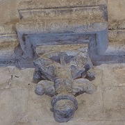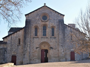 Façade de l'abbatiale ファサードは2つのバットレスで3つの部分に分けられます。 中央部分には半円型の入り口があり、3層のヴシュールは、ウォーターリーフで装飾された柱頭に繋がります。リンテルの上のタンパンには、子羊の紋章があり、これは1455年以降にエクサン・プロヴァンスの参事会員によって付け加えられたものです。入り口の上には、半円型の開口部が3つ並ぶトリプレ、更に大きなオクルスがあります。 脇の部分は南北共に、やはり半円型の扉があり、リンテルとタンパンを戴いています。扉の上には、半円型の開口部がひとつあります。北の扉は恐らく助修士用の入り口で、南の扉は死者の扉とされていました。 La façade se divise en trois par deux puissants contreforts. La partie centrale est percée d'un portail en plein cintre à trois voussures, reposant sur des chapiteaux à feuilles d'eau. Le tympan au-dessus du linteau, présente un écusson à l'agneau, ajouté par les chanoines d'Aix-en-Provence après 1455. Ce portail est surmonté d'un triplet de baies en plein cintre et d'un grand oculus. Les parties latérales sont chacune percées d'une porte en plein cintre, couronnée d'un linteau et d'un tympan vide, et d'une baie en plein cintre. La porte nord était probablement réservée aux convers, la porte centrale aux hôtes de marque, et la porte sud aux morts. |