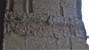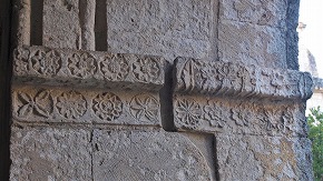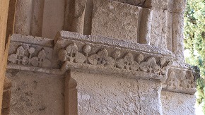 | Les décors végétaux et géométriques des piliers supportant les arcades, sont encore visibles |