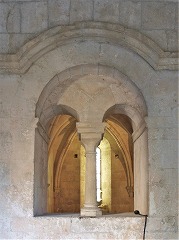 かつて各開口部は、小円柱で隔てられた、オクルスを戴く対になった尖頭型の開口部で構成されていました。しかしこれらは破壊され、現在は北ギャラリーで1箇所復元されているのみです。 |