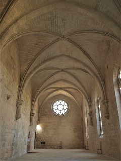 Croisée du transept トランセプト交差部はオジーヴ・ヴォールトで覆われています。シルヴァカンヌは、祭室、次にトランセプト交差部で、プロヴァンスにおいて最も早い時期にオジーヴ・フォールトを導入したとされます。 La croisée du transept est voûtée d'ogives. Silvacane a premièrement introduit, dans les chapelles, puis à la croisée du transept, la voûte d'ogives en Provence. |