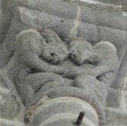 | アプスと教会堂の北側面では、数多くのモディヨンを観察することができ、殆どが人間、動物、モンスターの顔が彫られています。モディヨンの中に、髭を生やした男性の顔がみられ、これは他の地方ではあまり見られない表現だそうです。 | ||