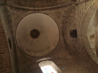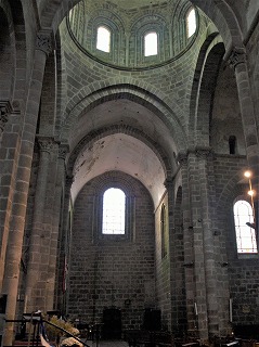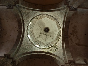 トランセプト交差部は、ペンデンティブ技法によるクーポルで覆われていて、クーポルは、3つの円柱がはりついたピラーで支えられた4つの尖頭型のアーチの上に形成されています。クーポルの上には、ランタン型の鐘楼が聳えます。 クーポルには、3層のヴシュールで装飾されたリムーザン風の8つの開口部があります。中央のオクルスは八葉になっています。 |