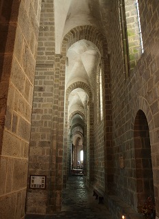 側廊の幅は約2.5メートルと狭く、天井には交差ヴォールトが架けられています。横断アーチは半円型です。 |