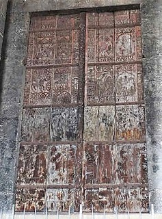 | Portes de cèdre 3番目のベイの階段の両側に、北にシャペル・サン・ジル、南にシャペル・サン・マルタンがあります。 12世紀後半、これらの祭室の正面に、ヒマラヤスギで造られた扉が設置されました。 この2つのヒマラヤスギの扉にはそれぞれ、キリストの生涯のエピソードを描いたロマネスク期の彫刻装飾が残っていて、北の扉にはキリストの幼少期、南の扉にはキリストの受難が表現されています。 この2つの扉は、フランスにおいて、唯一ロマネスク期の彫刻が施された木製の扉です。 Dans la troisième travée, de part et d'autre de l'escalier, se trouvent la chapelle Saint-Gilles au nord, et la chapelle Saint-Martin au sud. Au dernier quart du 12e siècle, les portes en cèdre se sont installées à la face des chapelles. Ces deux portes de bois conservent la sculpture romane représentant des épisodes de la vie du Christ : l'enfance du Christ au nord, et la Passion du Christ au sud. Elles sont les seules portes romanes sculptées de ce genre en France. |