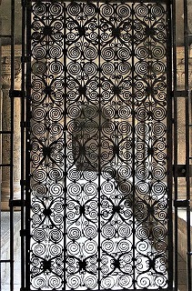 Grille romane en fer forgé 西ギャラリーの端に、12世紀初めに制作された渦巻き模様の鉄柵が残ります。これはフランスで最古とされる鉄細工のひとつです。 西ギャラリーはこの鉄柵によって、西ポーチと繋がっています。 La galerie occidentale se termine par la grille en fer forgé de motifs spirals, réalisée au début du 12e siècle : il s'agit de l'un des plus anciennes ferroneries de France. Cette grille relie la galerie occidentale à un passage du porche occidental. |