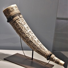 | Olifant dit Huchet de M. saint Hubert, datant de la fin du 11e siècle ou du début de 12e siècle, réalisé en Amalfi | ||||