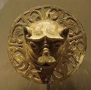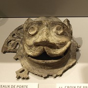 | Marteaux de porte romane en bronze, provenant de la cathédrale Notre-Dame du Puy : têtes de félins, | ||