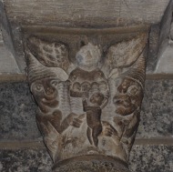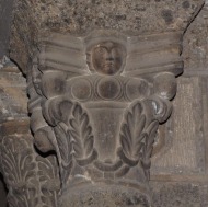 | 内部では、11・12世紀に遡る550もの柱頭彫刻があるそうです。大半は植物モティーフですが、聖人伝を表現した柱頭彫刻も見られます。 | ||