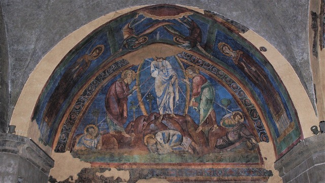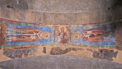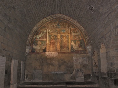 | 北翼廊の奥にある左側の祭室には、12世紀に制作されたキリストの墓を訪れる聖女達のフレスコ画があります。このフレスコ画はビザンティンの厳かさを帯びています。 | ||