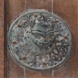 Porte romane du porche du For もう一つの扉はロマネスク期のもので、開き戸にはブロンズ製の2頭のライオンの頭で装飾されたドア・ノッカーがあります。尚、このオリジナルはミュゼ・クロザティエールにあります。 L'autre est romane et ses vantaux sont ornés de deux têtes de lions en bronze, dont les originaux sont au musée Crozatier. |