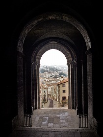 Porte papale Porche du Forには2つの扉があります。小さな方の扉はポルト・パパルと呼ばれ、ローマ教皇や高位聖職者専用の扉でした。 Deux portes ouvrent sur le porche du For. La porte plus petite, dénommée porte papal, était reservée au souverain pontifié et aux hauts dignitaires ecclésiastiques. |