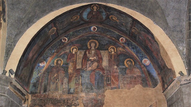 西ポーチでは、12世紀後半又は13世紀に制作された、ビザンティンからインスパイアされたフレスコ画を見ることができます。フレスコ画は2004・2005年に修復されています。 |