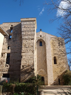 | 533年にマグローヌ島に司教座が置かれました。8世紀に島を征服したサラセン人によりモスクに姿を変えていた最初の教会堂は、737年にカール・マルテルにより完全に破壊され、司教は数キロ離れた街に移動しました。 約3世紀放置されていた島に司教座を戻すため、11世紀、司教アルノーが教会堂を再建します。教会堂は1054年に献堂されました。 1085年、メルゲイユ伯が伯領と司教区の権利をローマ教皇に献上します。聖座の所有となったマグローヌは、同時にローマでの闘争から逃れてきた教皇らの亡命地ともなり、大きく飛躍します。そこで新たな教会堂が建設され、主祭壇は1162年に聖別されました。 司教座は1536年にモンペリエに移されます。1562年、島を占拠していたプロテスタントに対抗し、リシュリューが教会堂の城壁を砲撃しました。→ En 533, un évêché a été fixé sur l'île de Maguelone. La première église, transformée en mosquée par les Sarrasins, qui ont conquis l'île au 8e siècle, a été entièrement détruite en 737 par Charles Martel. L'évêque s'est installé à quelques kilomètres, à Substantion (Castelnau-le-Lez). L'évêque Arnaud a reconstruit l'église pour le retour de l'évêché sur l'île, abandonnée durant trois siècles : elle a été consacrée en 1054. En 1085, le comte de Melgueil a fait don de son comté et des droits sur l'évêché au pape Grégoire VII et a ses successeurs. Devenue propriété du Saint-Siège et terre d'asile pour les papes fuyant les luttes à Rome, Magulone connaît un grand éssor. Une nouvelle église a été alors construite au 12e siècle : le maître-autel a été consacré en 1162. Mais l'évêché a été transféré à Montpellier en 1536. En 1632, Richelieu a démantelé au canon la forteresse de l'église, contre les protestants, qui occupaient le site.→ |