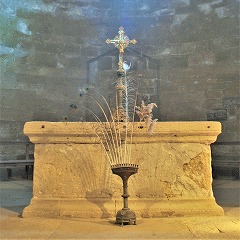 祭室には、1487年に亡くなった司教ジャン・ド・ボナルドの紋章がある祭壇があり、その上に、復元されたアルノー司教の墓碑が置かれています。 アルノーは1060年にエルサレム巡礼の帰路でヴィルヌーヴで亡くなり、その遺体ははじめ回廊におさめられましたが、12世紀にこの祭室に移されました。 |