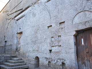 Traces du cloître 階段の頂にある北側の扉は、12世紀半ばに建設された回廊の上階へと開かれていました。回廊は今日、破壊されてしまっています。 かつて教会堂の北側には、長方形プランの2階建ての回廊がありました。回廊の周りには、司教の住居、食堂、寝室、炊事場がありました。 La porte nord au sommet de l'escalier, ouvre sur le cloître supérieur, construit au milieu du 12e siècle, aujourd'hui détruit : au flanc nord de l'église, se trouvait le cloître rectangulaire à deux étages. Autour du cloître, se trouvaient le palais episcopal, le reféctoire, le dortoir et les cuisines. 左は回廊上階の南ギャラリーの遺構、右は教会堂北東より回廊の遺構を見たイメージです。 |
