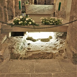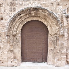 | ポーチの西側には、サン・サクルマン祭室があります。ここには5世紀に遡る白大理石でできた祭壇テーブルがあり、これはアルファとオメガの文字を伴うクリズムと12羽の鳩で装飾されています。 | ||
