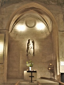 Chapelle Saint -André イザーン祭室の北、旧聖具室の東にあるサン・タンドレ祭室は、初期キリスト教時代のバジリカの入り口でした。 12世紀イザーンの塔が建設されたことにより、オリジナルの入り口は塔の中に覆い隠され、13世紀、その通路は祭室となりました。そのようなわけで、この祭室は今日イザーンの基礎に位置します。 かつてこの祭室には、アンデレの聖遺骨がおさめられていました。 Située au nord de la chapelle d'Isarn, à l'est de l'ancienne sacristie, la chapelle Saint-André constituait l'entrée originelle de la basiliqe paléochrétienne. Au 12e siècle, la construction de la tour d'Isarn a enveloppé l'entrée originelle, et au 13e siècle, le passage est devenu une chapelle : elle est aujourd'hui dans les fondations de la tour d'Isarn. Elle abritait les reliques de saint André. |