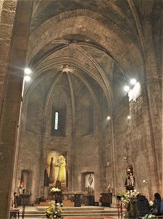 | Choeur et abside 教会堂の東部分はトランセプト同様、14世紀後半に再建されています。 1ベイの内陣はオジーヴ・ヴォールトで覆われ、その先にアプスが続きます。アプスには3つの細長い開口部が見えます。 La partie occidentale de l'église a été reconstruite à la seconde moitié du 14e siècle, ainsi que le transept. Le choeur d'une travée, voûtée d'ogives précède l'abside, percée de trois baies étroites. 14世紀の教会堂の拡張と要塞化の工事は、教皇ウルバヌス5世主導下で実施されました。 サン・ヴィクトール修道院長ギヨーム・ド・グリモワールは、1362年にウルバヌス5世として教皇に指名され、翌年工事に着手しました。 L'agrandissement et la fortification de l'église haute au 14e siècle, ont été exécutés sous l'initiative du pape Urbain V. Guillaume de Grimoard, abbé de Saint-Victor, a été nommé pape d'Avignon en 1362 sous le nom d'Urbain V, et a entamé les travaux l'année suivante. |
