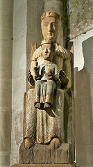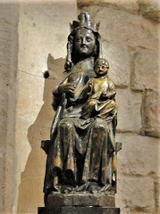 Notre-Dame de la Sagesse 北側廊の2番目のベイにあるサン・サクルマン祭室への入り口の近くに、聖母マリアの母子像(木像)があります。これは11世紀に制作されたカタロニアのマリア像に倣って後世に制作されたものです。 Près de l'entrée de la chapelle du Saint-Sacrement dans la deuxième travée du bas-côté nord, est exposée la statue en bois Notre-Dame de la Sagesse, realisée d'après une Vierge catalane du 11e siècle. |