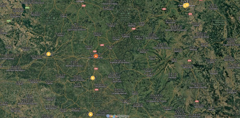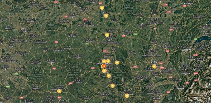 | クレルモン・フェラン(上記参照)から更にTERで約40分、ちなみに同一路線上のブリウド迄は約55分です。 |