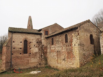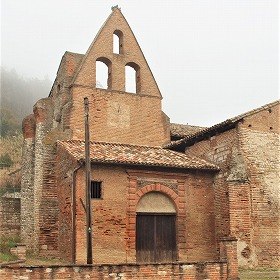 | 南東から見たイメージです。 9世紀後半、聖遺骨移送の際に、内陣の東側に小さな六角形プランのアプスが建てられました。アプスの位置には、浴場の貯水プールがありました。 内陣内部の南壁には、石棺がおさめられている壁龕があり、これはピレネーの大理石で造られた7世紀に遡る2つの柱頭で装飾されています。 Une petite abside hexagonale décentrée a été ajoutée à la seconde moitié du 9e siècle, côté oriental du choeur, lors de la translation des reliques. Elle corrspondait à un réaménagement du bassin du balnéaire. Sur le mur intérieur sud du choeur, se trouve l'enfeu construit au 13e ou 14e siècle abritant un sarcophage. Celui-là est orné de deux chapiteaux en marbre des Pyrénées du 7e siècle. 南側に位置するノートル・ダム祭室は、15世紀末に造られました。オジーヴ・ヴォールトで覆われた祭室には、同世紀に遡る壁画が残されており、キリストの生涯が綴られています。 19世紀に教会堂の北側に祭室が造られましたが、これは鉄道の線路が造られる時に壊されました。 |