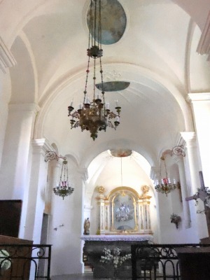 | Chapelle funéraire ロマネスクのアプスの東側にある2ベイの葬儀の祭室は、領主であったアベル・ド・ヴィシーによって1777年にバロック又は新古典主義スタイルで増築されました。祭室の装飾は1854年に遡ります。 この祭室は今日内陣として利用されています。 La chapelle funéraire de deux travées, dans le prolongement oriental de l'abside romane, a été construite en 1777 dans un style baroque ou néo-classique par le seigneur de lieu, Abel de Vichy. Sa décoration date de 1854. Aujourd'hui, la chapelle est utilisée comme choeur. |