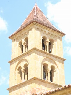 Portail occidental 西入り口は、この教会堂の至宝であり、12世紀初め、恐らく1120‐1125年頃に造られました。扉の鉄細工の装飾も、入り口と同じ時期に遡ります。 柱頭彫刻を戴く2つの円柱に囲まれた入り口には、ひとつの石で作られたタンパンとリンテルがあり、これは5層のヴシュールがある半円型のアーキヴォールトに囲まれています。 Le portail occidental, joyau de l'édifice, a été réalisé au début du 12e siècle, probablement entre 1120 et 1125. Les ferrures de la porte remontent à la même période. Encadré de deux colonnes aux chapiteaux sculptés et aux bases décorées de rinceaux, le portail présente un tympan et un linteau taillés dans un seul bloc de pierre, entourés d'une archivolte en plein cintre à cinq voussures. |