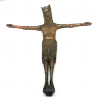 Christ couronné fin du 12e siècle, bronze H23,5 : L22,4 cm 12世紀末に制作されたブロンズのキリスト磔刑像です。サイズは高さ23.5p、幅22.4pです。 このキリスト像は、本来十字架に固定されていたものと考えられています。 Ce Christ couronné était vraisemblablement fixé sur une croix à l'origine. |