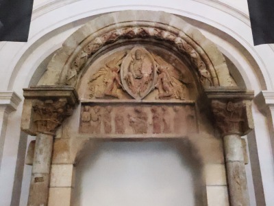 ミュージアムのメインの部屋に、パレ・ル・モニアルから南約20キロ離れたところにあるアンジー・ル・デュックの旧小修道院の囲いにあった西入り口が展示されています。 Dans la salle principale du musée, est exposé le portail occidental de l'enceinte de l'ancien prieuré de la Sainte-Trinité, la Sainte-Croix et la Sainte-Marie d'Anzy-le-Duc, situé à une vingtaine de kilomètres au sud de Paray-le-Monial. 入り口のタンパンは革命時に打ち壊され、その後アルシーのシャトーで保管されていましたが、1896年頃にミュージアムに寄贈され、1953年に組み直されました。 Démantelé lors de la Révolution et puis conservé au château d'Arcy, son tympan a été donné au musée vers 1896, et remonté en 1953. |