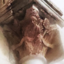 | ヴシュールを受ける2つの柱頭と、リンテルを支えるコーベルには、それぞれ預言者が彫刻されています。預言者は顎髭を生やし、開いたフィラクテールを手にしています。 | ||