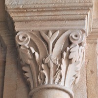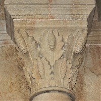 | ナルテックスでは円柱の土台部分も彫刻されており、モンスターや動物の頭、植物、卵型、花等のモティーフが見られます。 | ||