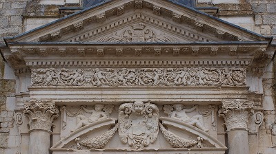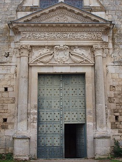 1096年にローマ教皇ウルバヌス2世によって聖別されたロマネスクの教会堂は、豪勢にも全て切石で建てられました。これはポワトゥで初めてのことです。 フランス革命時、修道院は兵舎となり、教会堂は厩舎として、次に飼料倉庫として1805年まで利用されました。 Pour la première fois en Poitou, l'abbatiale romane, dédicacé en 1096 par le pape Urbain II, a été fastueusement construite tout en pierre de taille. A la Révolution, l'abbaye a été convertie en caserne. L'église a servi d'écurie, puis de magasin à fourrage jusqu'en 1805. Façade ロマネスクのファサードは、ユグノーによりダメージを与えられたため、削り取られました。やはりダメージを受けていた身廊の西側部分が壊され、1643−1644年、ファサードはロマネスクのファサードより身廊の1ベイ分後退する形で再建されました。 La façade romane, trop endommagée par les Huguenots, a été rasée. En supprimant deux travées de la nef, également endommagées, la façade a été reconstruite en 1643-1644, en recul d'une travée par rapport à sa position d'origine. |