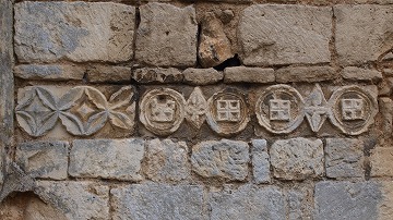 | 現存のファサードには、部分的にロマネスク時代の石が再利用されていて、その中には彫刻が施されたものもあります。 | |