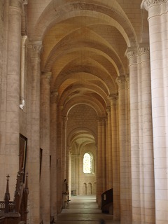 側廊は交差ヴォールトで覆われています。1562年のユグノーによる火事の後、1643−1644年に北側廊の西側の5ベイのヴォールトは修復されました。 側廊の延長線上に周歩廊ははじまります。 |