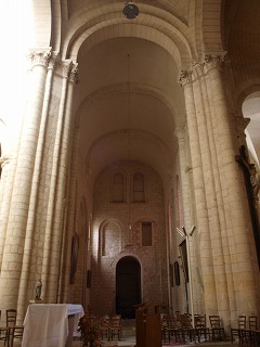 | トランセプトは創建時と同じ高さで、円筒型ヴォールトで覆われています。南北の翼廊はそれぞれ東向きのセミ・ドームで覆われた後陣祭室に面していて、北翼廊にはシャペル・サン・ティジドール、南翼廊にはシャペル・サン・モーリスがあります。 また両翼廊には入り口があり、かつて北翼廊にある入り口は墓地に、南翼廊にある入り口は回廊と修道院の建物に繋がっていました。 |