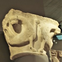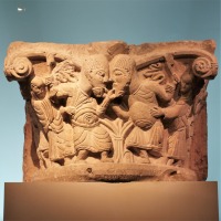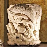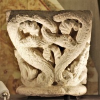 Monstres dans des rinceaux végétaux, tailloir : rinceaux végétaux |