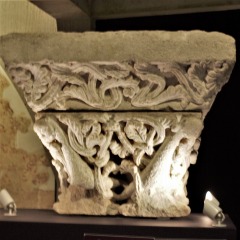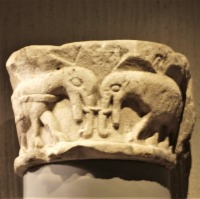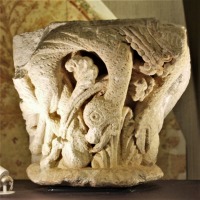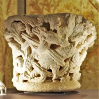 Chapiteaux du 12e siècle provenant de l'ancienne abbaye Notre-Dame de Nanteuille (Nanteuille-en-Vallée), probablement de la salle capitulaire |