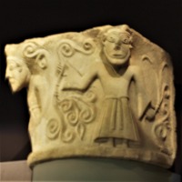 Dragon bicéphale ailé à queue de serpent | Animal (cerf?) recevant la flèche, et accompagné d'un oiseau et d'un quadrupède (chien?) | Centaure tirant à l'arc vers un animal (cerf?) |
