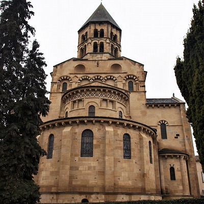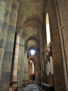 | Déambulatoire 内陣は周歩廊に囲まれますが、周歩廊に放射状祭室はありません。 周歩廊には交差ヴォールトが架けられ、半円型の開口部が各ベイに設けられています。 Le choeur est entouré d'un déambulatoire sans chapelles rayonnantes. Percé d'une baie en plein cintre par travée, le déambulatoire est couvert de la voûte d'arêtes. |