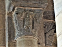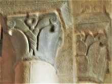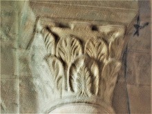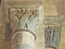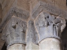 柱頭には概して植物モティーフが彫刻されています。但し4つの柱頭には、人物や動物の表現が見られます。 |